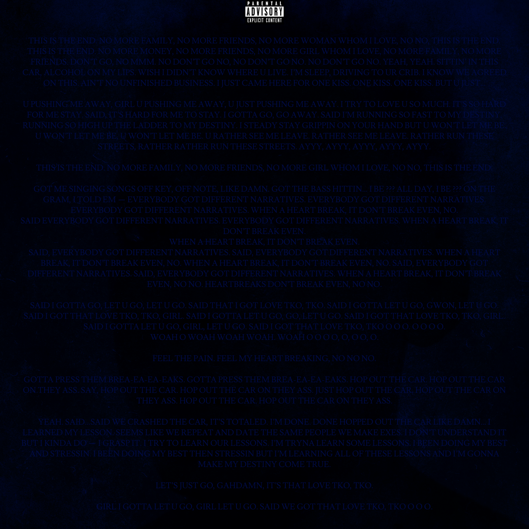 Before creating END., the song, I heard the melody for it in my head, on a ride back home one night. In the car, there was a deafening silence between my lover and I. That silence was the beat I produced for END.